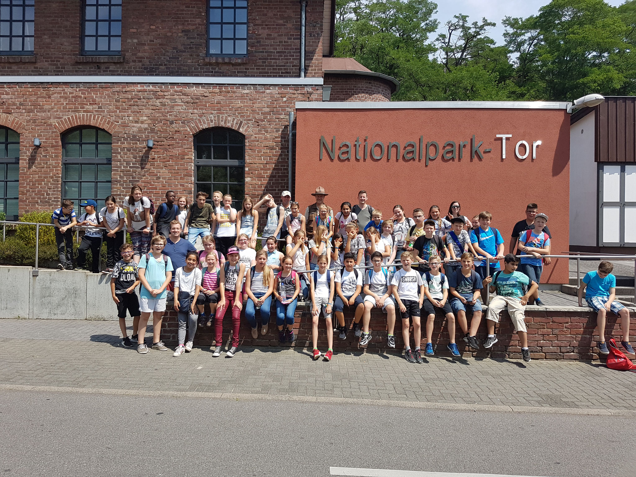 Am Ende des Schuljahres machten sich zwei Klassen des 5. Jahrgangs auf nach Heimbach, um den Nationalpark Eifel zu erforschen. Der Nationalpark stand zuvor bereits im Mittelpunkt des Biologieunterrichts. Zunächst besuchten die Schüler die Ausstellung des Nationalparktors im Heimbach, die über die Flora und Fauna des Schutzgebietes informiert. Hier gaben sich die Schüler alle Mühe die Quizfragen zu beantworten. Anschließend stand eine kleine Wanderung mit einem Ranger auf dem Programm. Während der Wanderung lernten die Kinder den Nationalpark spielerisch kennen. Vor allem die Tiere waren von besonderem Interesse.