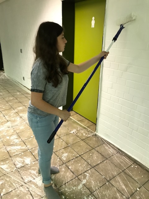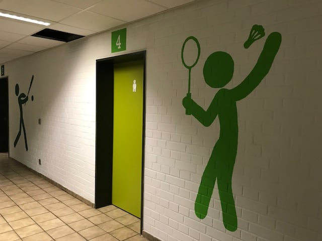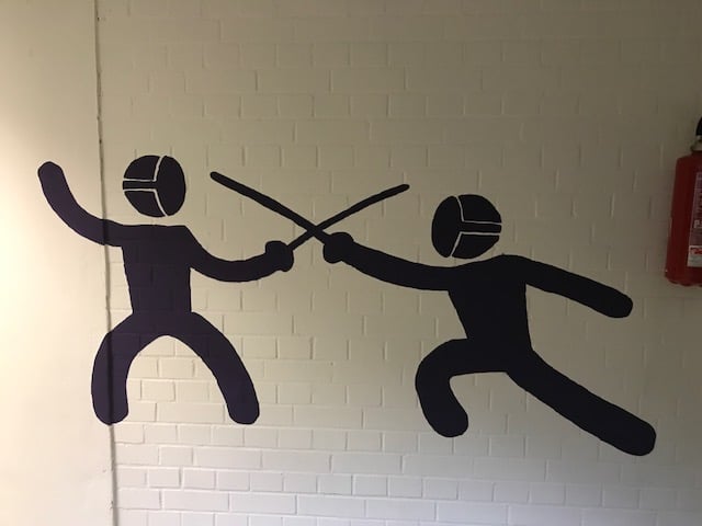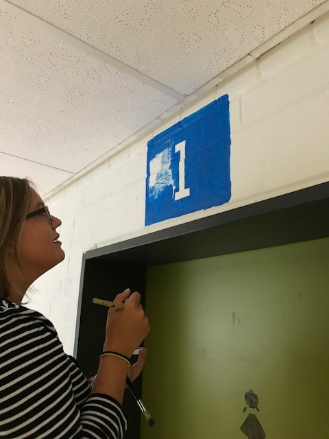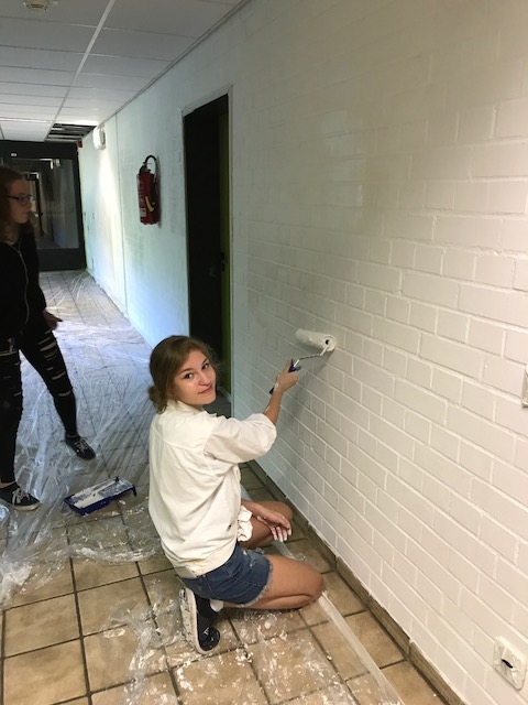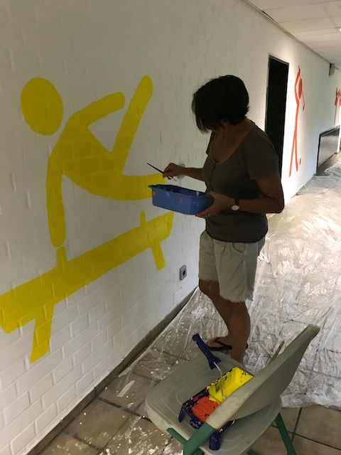 Im Frühling gab es eine Anfrage an die SV: "Wir möchten die Schule gerne verschönern. Was können wir tun?" Nach zahlreichen Sitzungen und vielen Überlegungen, stand das Konzept zur Neugestaltung des Sporthallenflurs: erst die Wände weiß streichen und dann Sportmotive sowie Umkleidenummern in verschiedenen Farben aufbringen. Gesagt, getan!