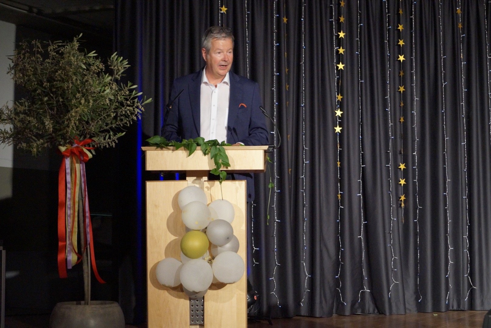 Auch der stellvertretende Bürgermeister Stephan Löhmann verwies auf die Schwierigkeiten, die die jungen Eschweiler*innen mit Pandemie und Flut in den letzten beiden Jahren mit Hilfe ihrer Eltern und Lehrkräfte gemeistert hätten und wünschte ihnen alles Gute für den weiteren Weg. Die Bundestagsabgeordnete Claudia Moll wandte sich ebenfalls mit besten Wünschen an die Schüler*innen und erinnerte sich daran, wie sie vor 35 auf der Bühne ihr Abschlusszeugnis überreicht bekam.