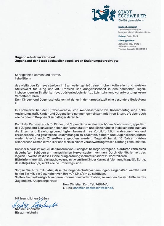 Appell der Bürgermeisterin zum Jugendschutz im Karneval