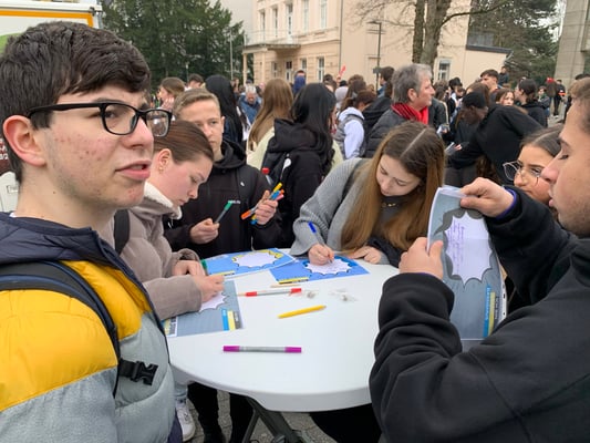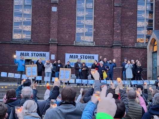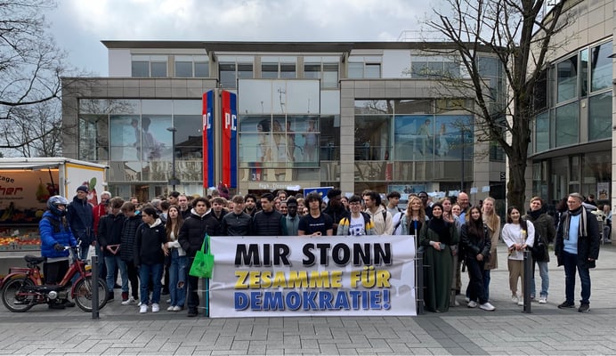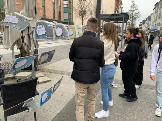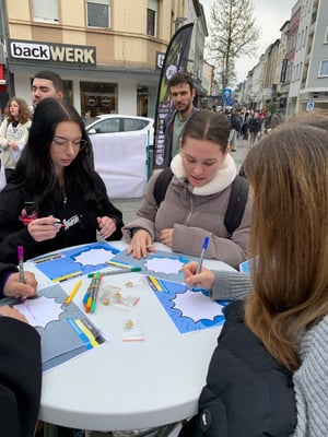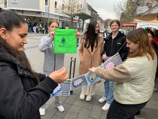 Am internationalen Tag gegen Rassismus hat die Waldschule sich tatkräftig an den Aktionen des Bündnisses „Mir stonn zesamme für Demokratie!“ beteiligt. Am Vormittag zogen rund 300 Schülerinnen und Schüler mit ihren LehrerInnen in die Eschweiler Innenstadt, um Statements für Toleranz, Vielfalt, Nächstenliebe und Demokratie und gegen Hass, Rassismus und Ausgrenzung auf bunte Zettel zu notieren. Die zahlreichen Statements wurden anschließend in der Einkaufsstraße an einer Kordel aufgehängt. Am Abend beteiligte sich die Waldschule ebenfalls an der zentralen Kundgebung am Eschweiler Markt und hielten eine brennende Kerze in die Luft, um ebenso ein Zeichen für Toleranz und Vielfalt zu setzen.