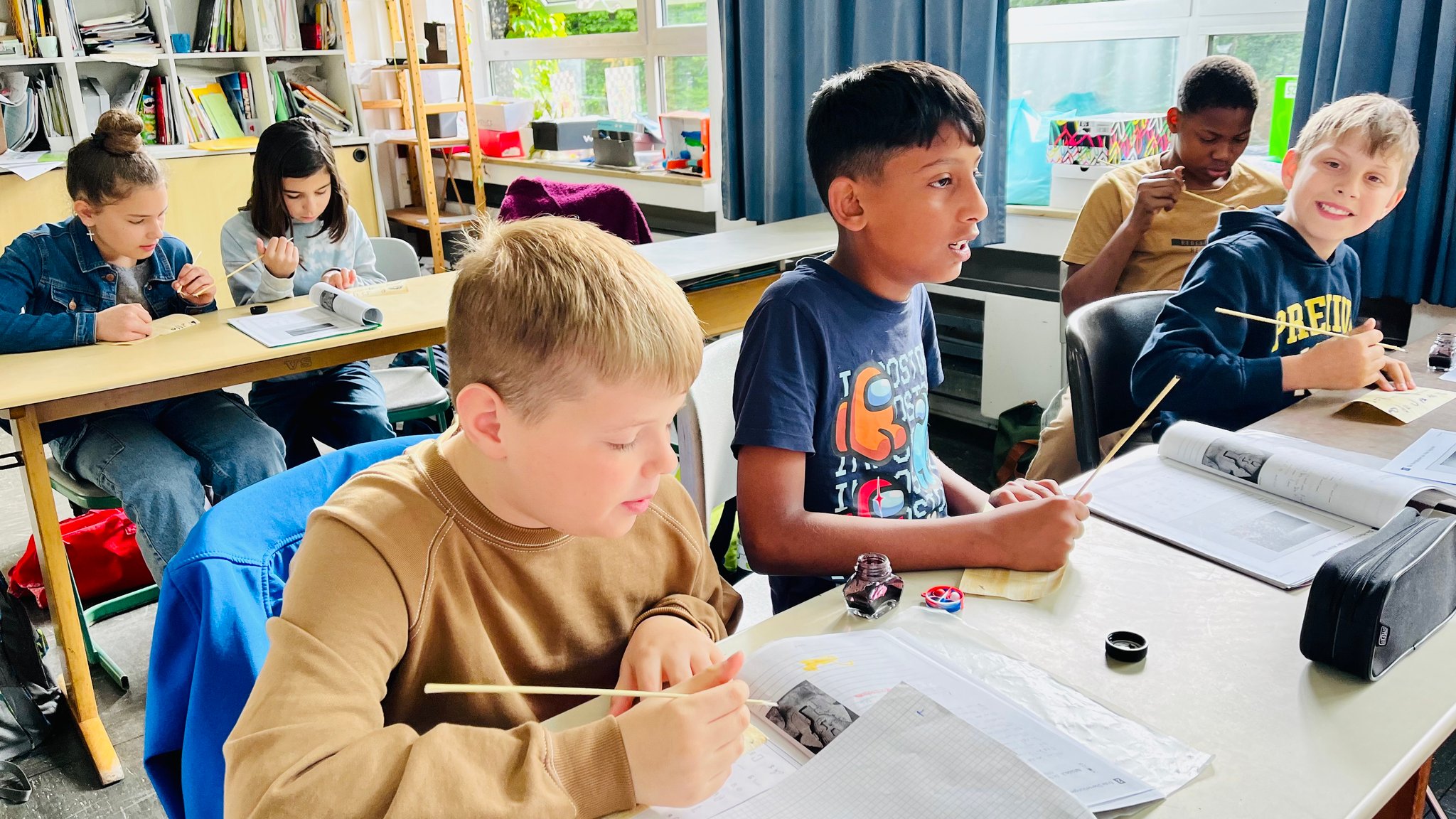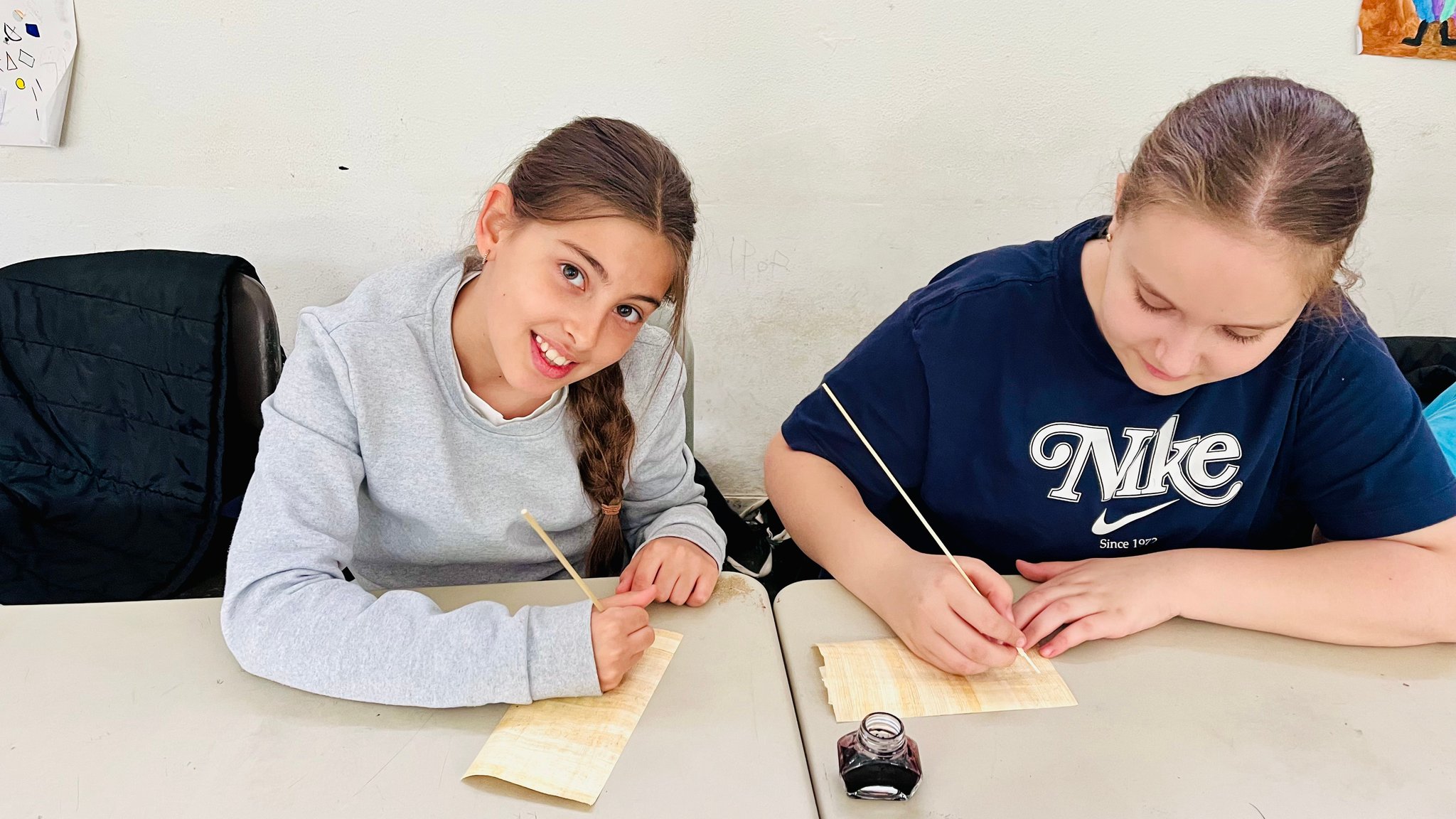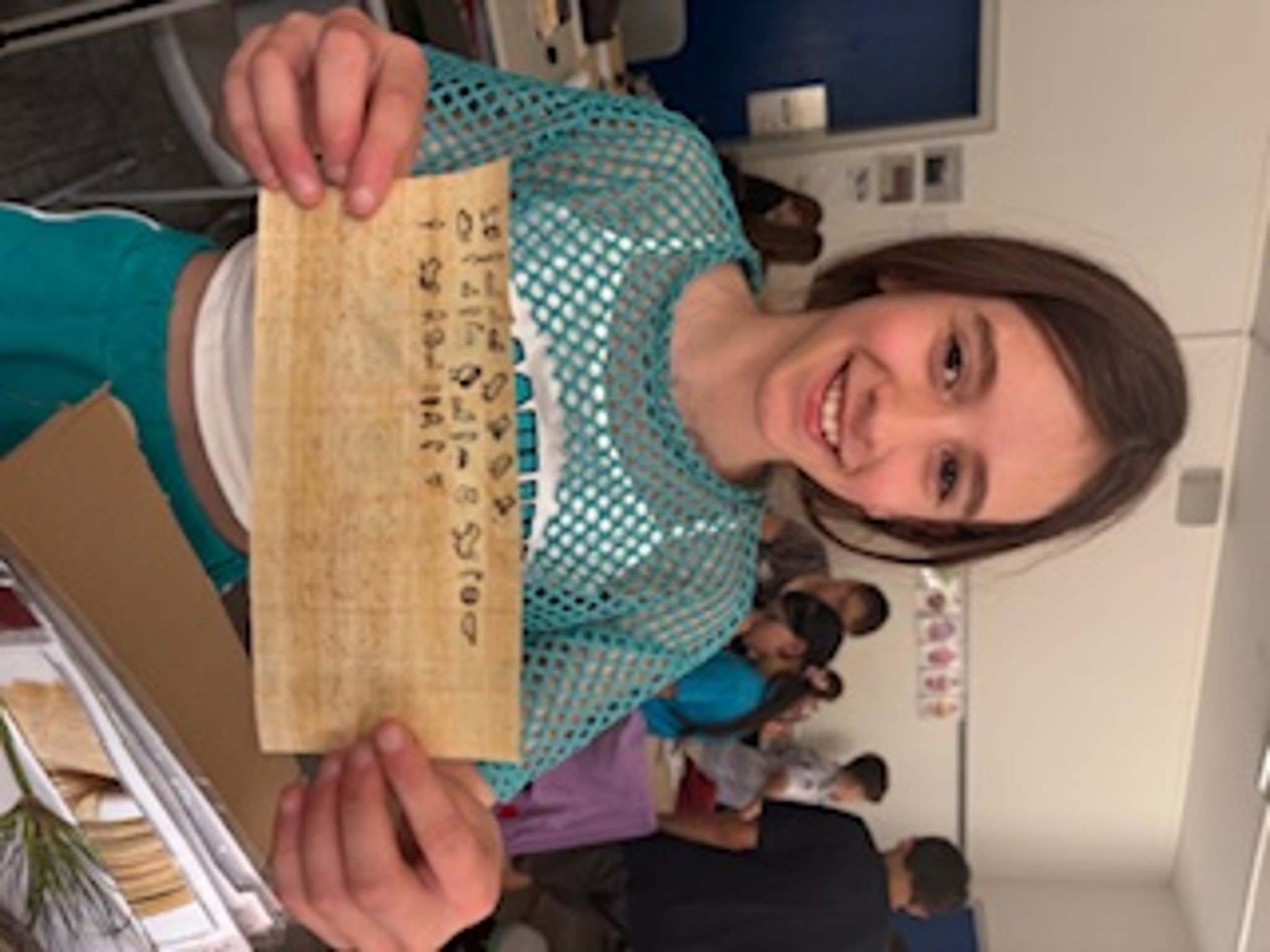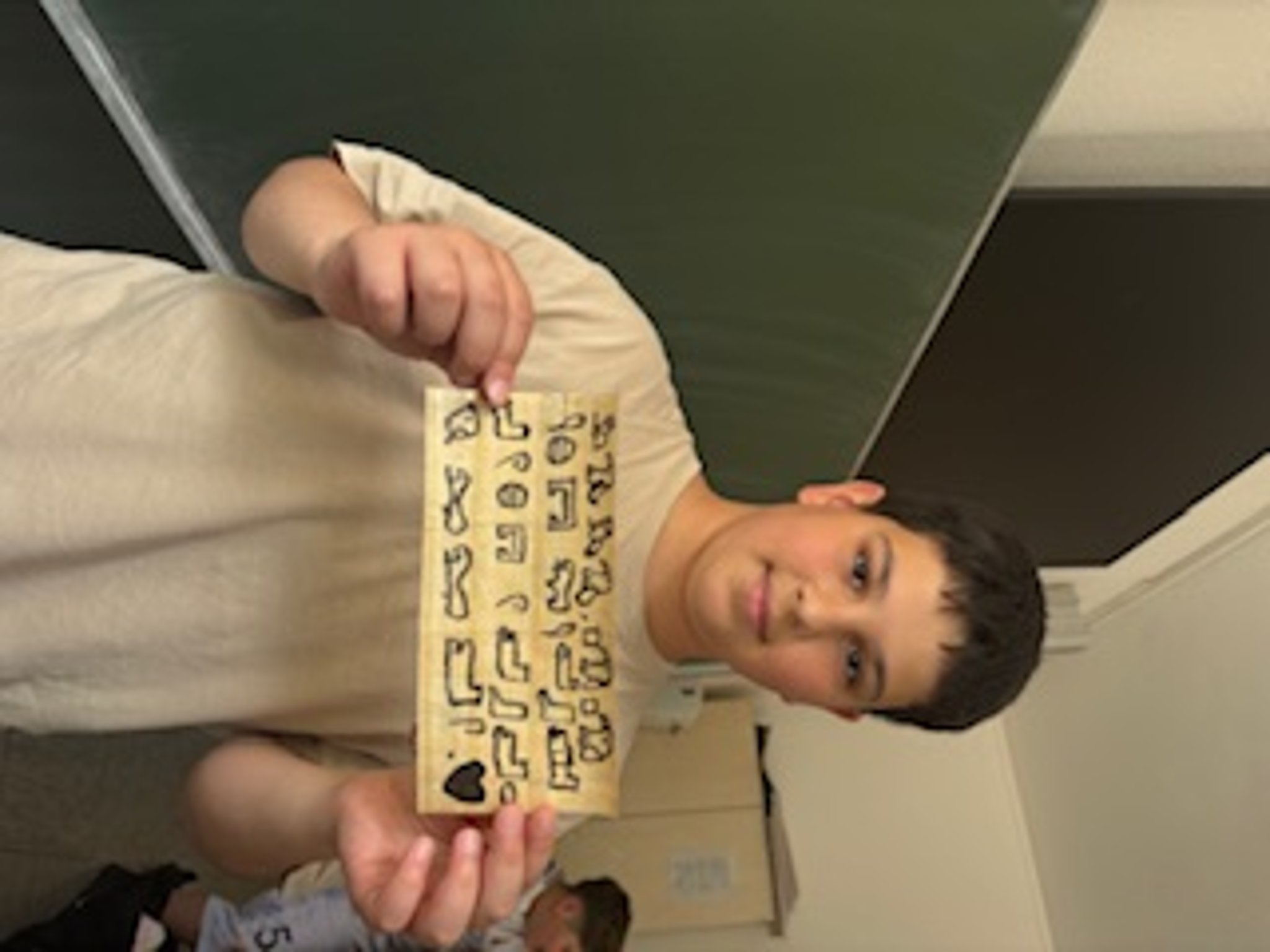 Im Mai nahmen zum ersten Mal alle 5. Klassen in Gesellschaftslehre an einem Hieroglyphen-Workshop teil. Spielerisch und handlungsorientiert erkundeten sie die Schrift der alten Ägypter per Papyrus und Schreibbinsen. Viele Schülerinnen und Schüler verfassten hierbei auch kurze persönliche Texte um Ihren Eltern, z.B. für den anstehenden Vatertag, eine kleine Freude zu bereiten
