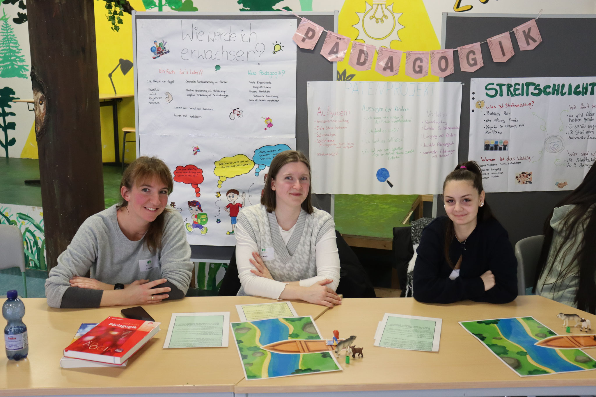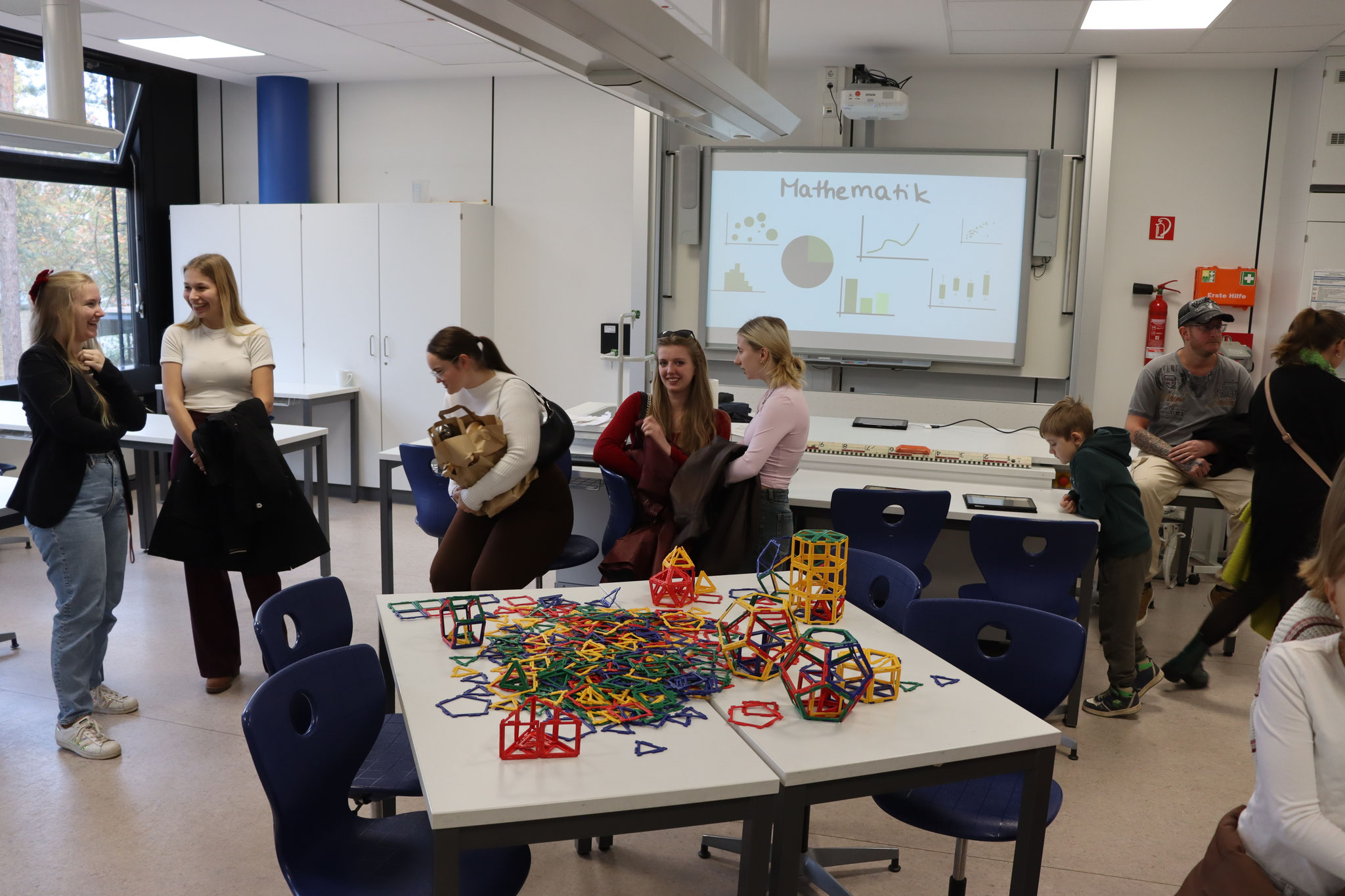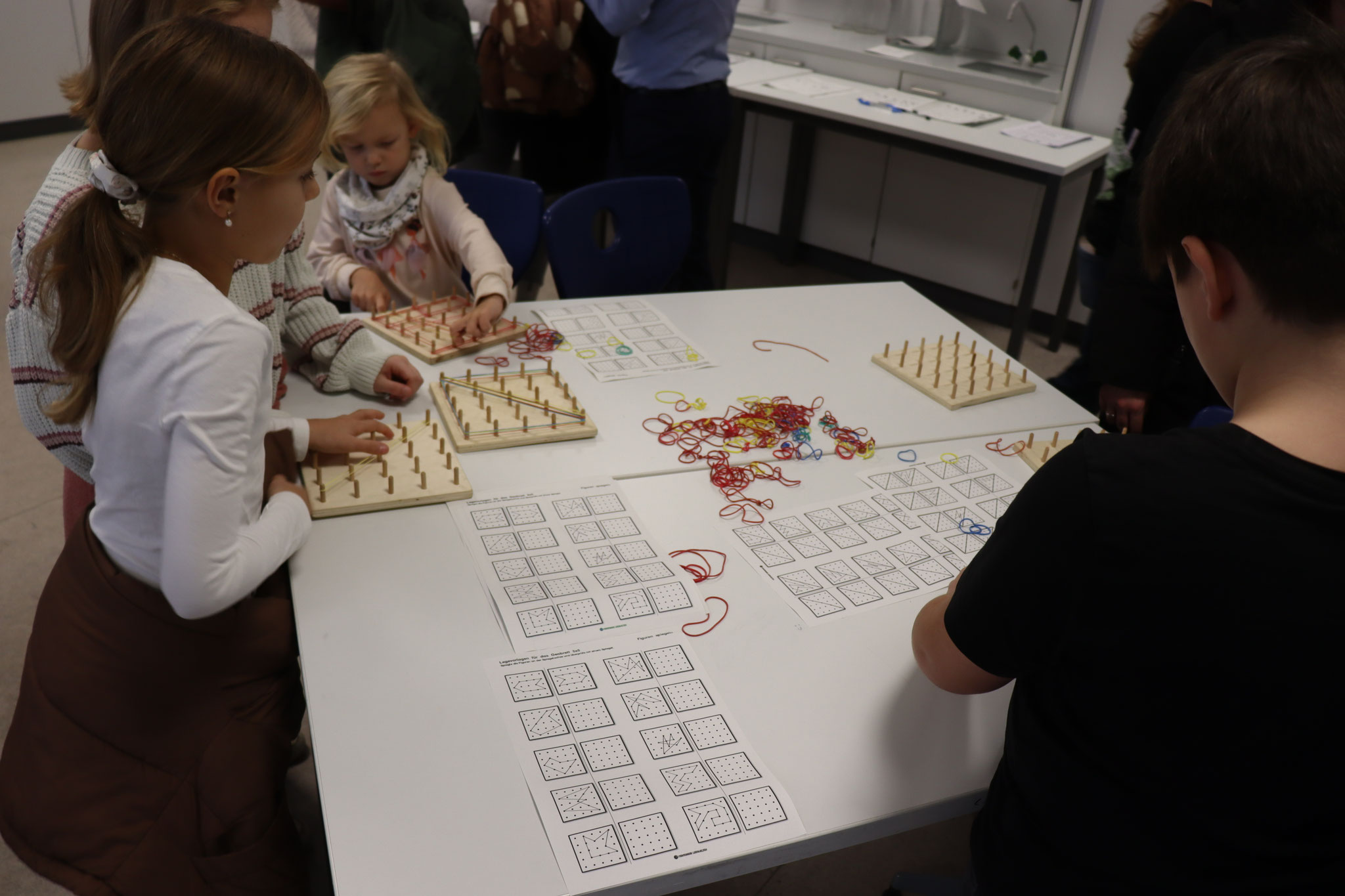 An zahlreichen Ständen gaben Kolleginnen und Kollegen Auskunft über die Inhalte, Anforderungen und Lehrwerke ihrer Fächer und versuchten diese durch Anschauungsmaterial und kleine Aufgaben den Kindern zugänglich zu machen. Geduldig beantworteten sie als Expertinnen und Experten die Fragen der Kinder und Eltern rund um das Fach.