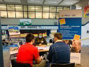 Wir freuen uns, dass die Berufsbörse für unsere Oberstufe nun endlich wieder stattfinden konnte. Seit fünf Jahren bieten wir unsere alljährliche Börse mit vielen verschiedenen Berufs- und Studiengangvertreter:innen an, damit sich unsere Schüler:innen mit Ausbildungsgängen, Berufsfeldern und/oder Studiengängen im Rahmen der Berufsorientierung der Waldschule in persönlichen Gesprächen vertraut machen können.