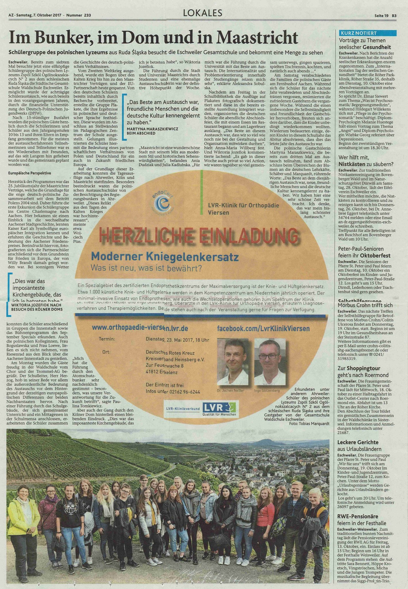 Beim Gegenbesuch richtet sich der Blick nicht nur auf die nähere geschichtsträchtige Umgebung wie Aachen oder Köln, sondern auch auf die zukünftige Gestaltung Europas.