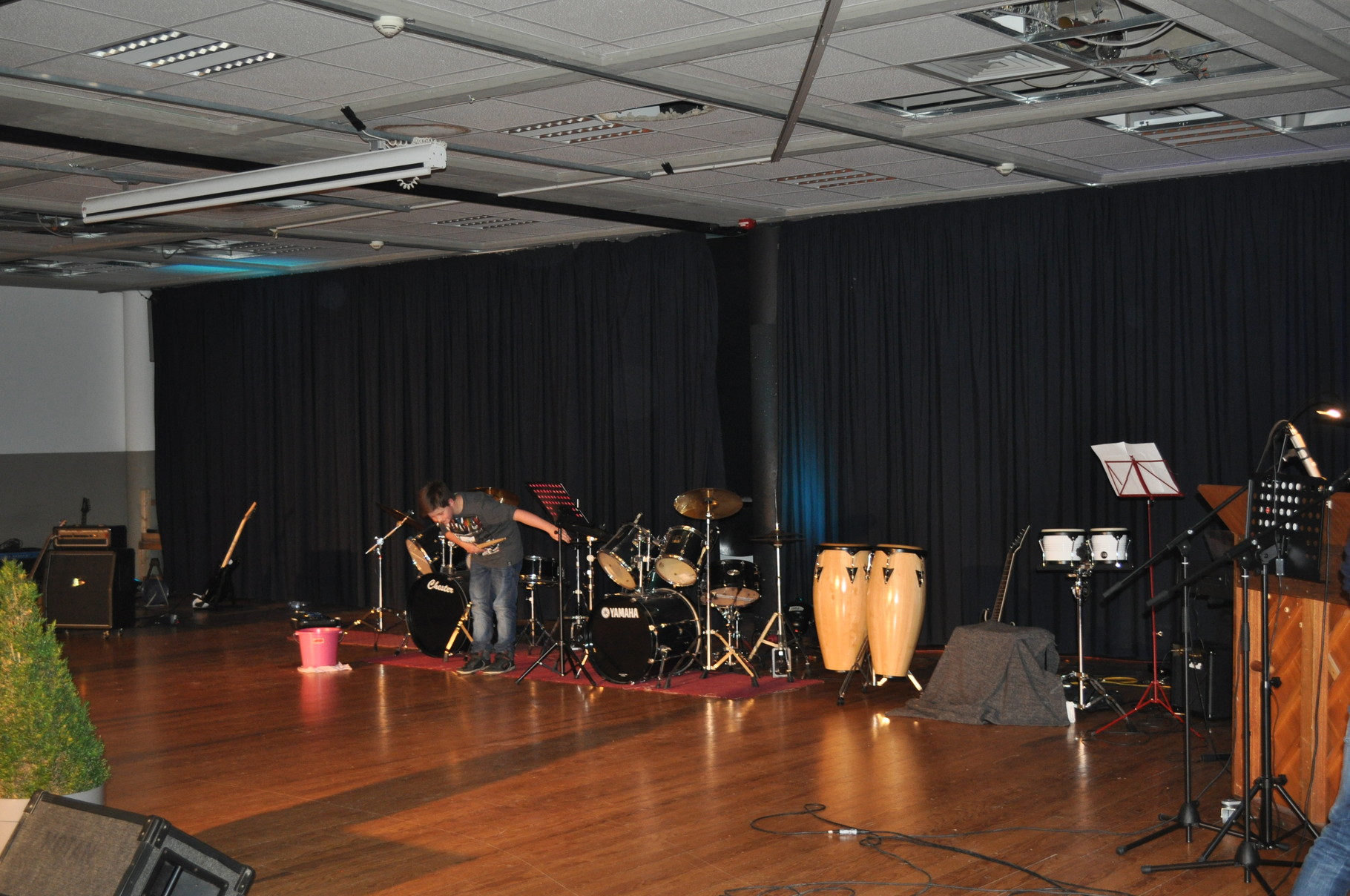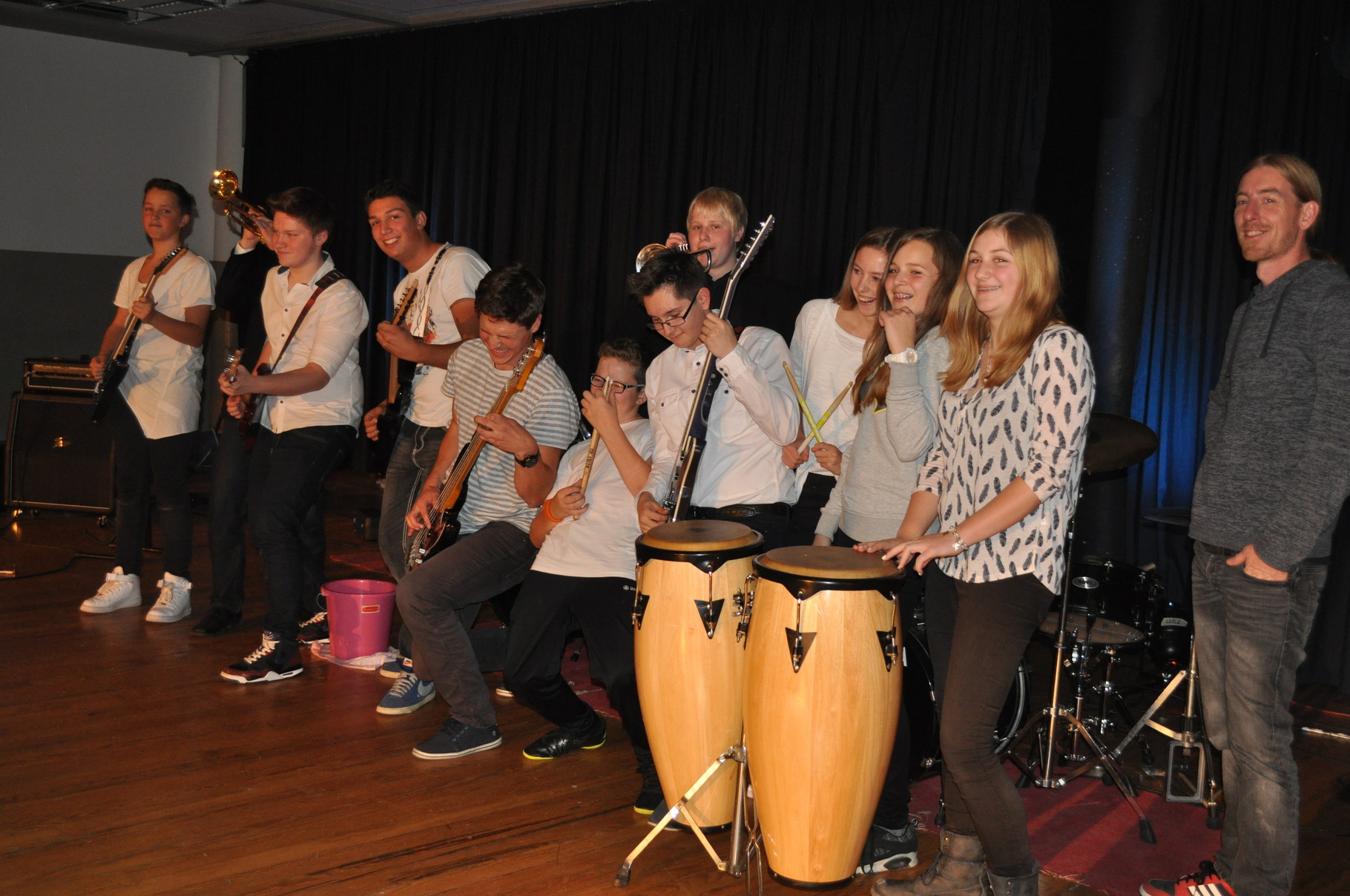 Viele Besucher waren gekommen, um die Talente unserer Schule zu sehen, den Chor und die Band, die ebenfalls Programmpunkte des Abends im Rahmen des Kulturrucksacks waren. Zehn Schüler unserer Schule haben uns an diesen Abend ihr Können gezeigt. Es standen Sänger, Tänzer, Klavier, Saxophon- und Trompeten-Spieler sowie ein Bau-Künstler auf der Bühne. Währenddessen gab es Verpflegung vom Förderverein und die Technikgruppe sorgte für das rechte Licht und den guten Ton.