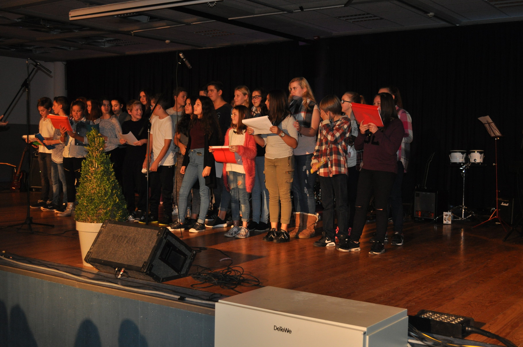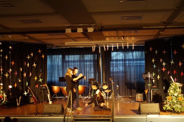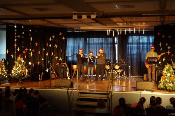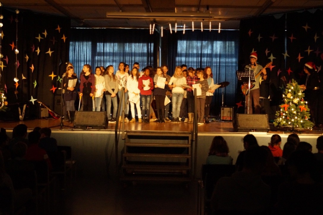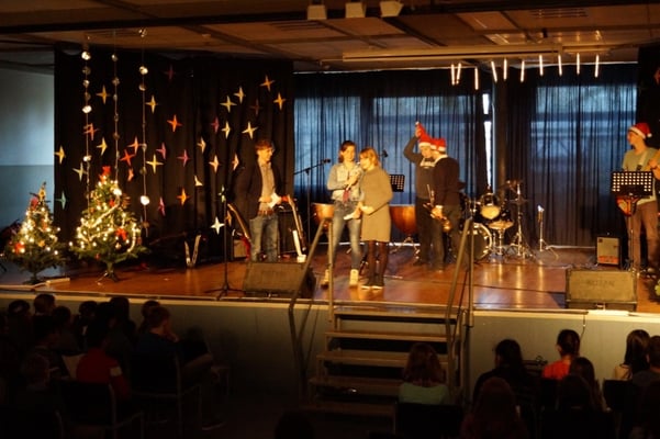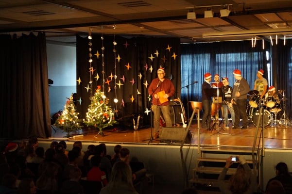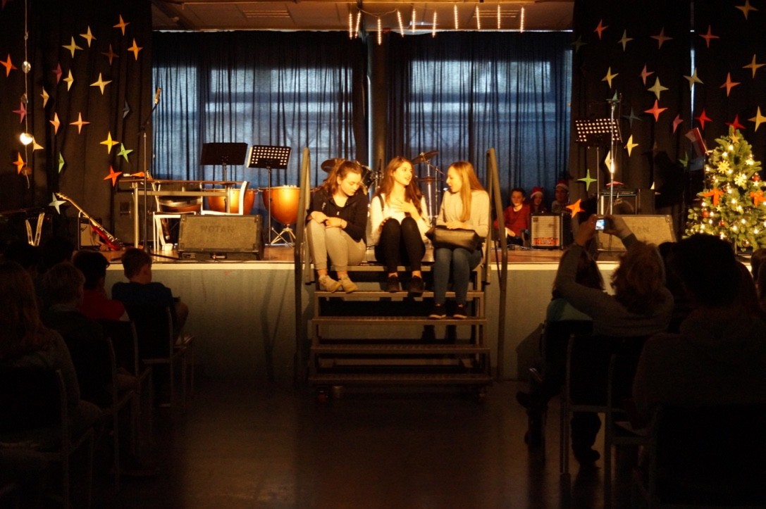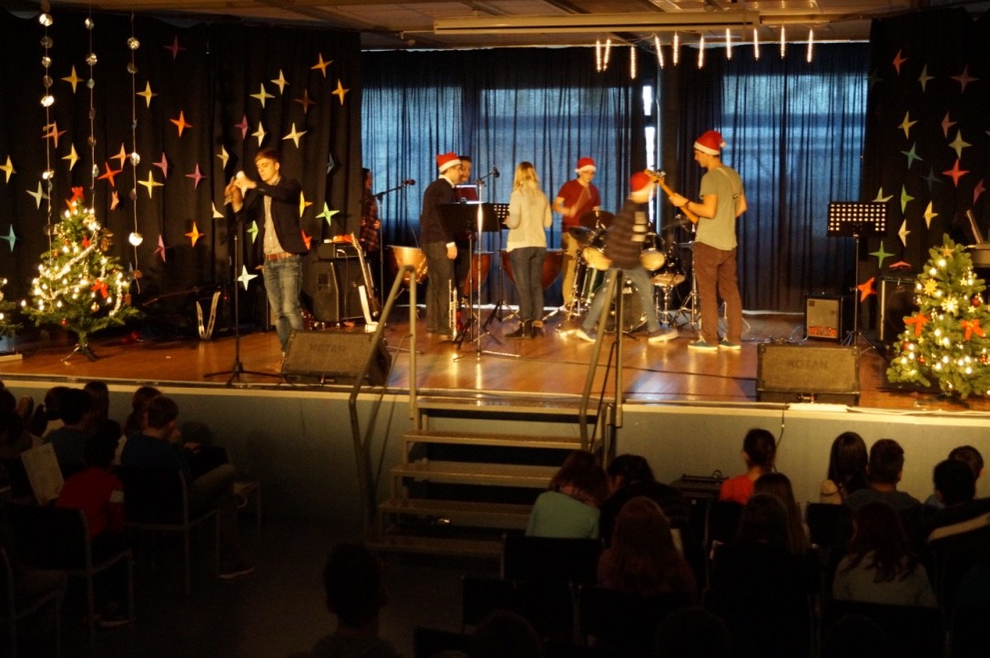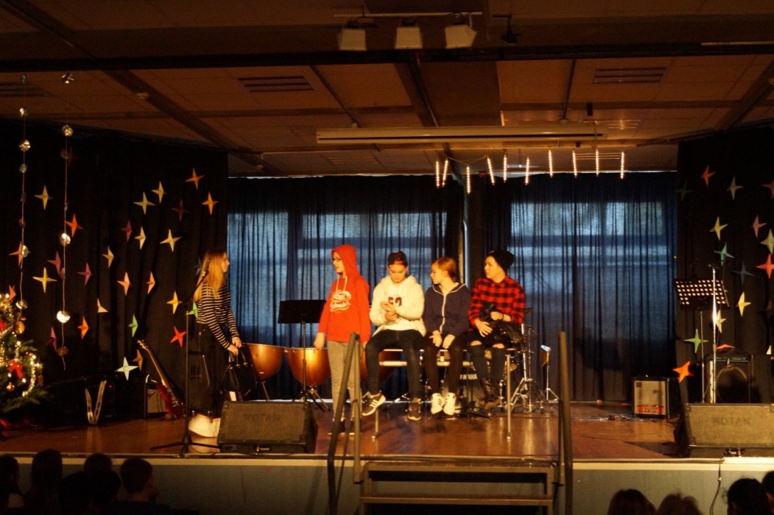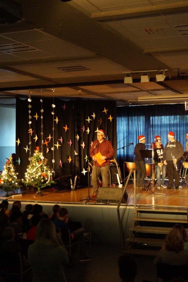 Für die gute Unterhaltung sorgten viele tolle Programmpunkte wie der Chor, die Band, Sketche der DG-Gruppe sowie einer Klasse, als auch die Trommel-AG und eine Rede des Schulleiters, der allen schöne Feiertage wünschte. Währendessen wurden leckere Kekse und Plätzchen für jeden verteilt.